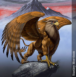 El grifo es una criatura grande del tamaño de un león mitad águila y mitad león, la parte frontal de la bestia es de cuerpo de águila y parte trasera de cuerpo de león. Esta criatura se le considera inmortal por tener 3 corazones por lo que es muy difícil asesinarlo y uno de estos tres corazones esta hecho de hierro.El grifo tiene una variación conocida como hipogrifo, la diferencia entre el grifo y el hipogrifo es que el primero es mitad león por la parte trasera mientras que el hipogrifo es mitad caballo por la parte trasera.